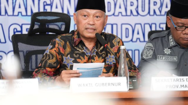 CARITA KOTA – Wakil Gubernur Maluku Utara, Sarbin Sehe, memimpin rapat koordinasi penanganan